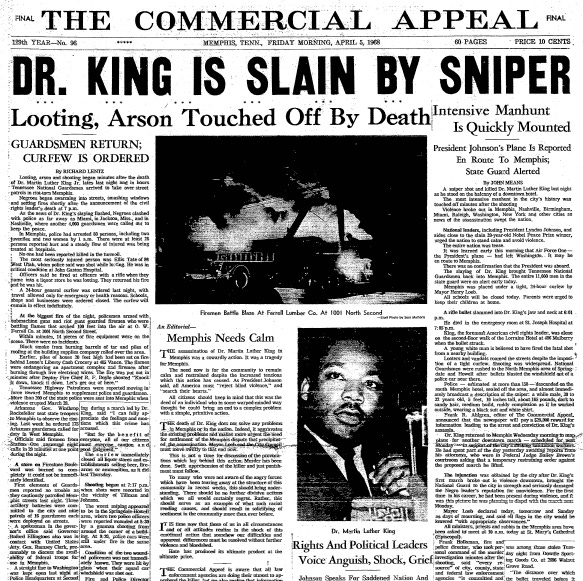 Dr. King stood on the balcony of the Lorraine Motel, checking notes from his jacket pocket. Beside him, Rev. Ralph Abernathy smiled, holding the car keys, ready to go. In the parking lot below, Rev. Jesse Jackson waited, joking with friends as they all prepared to leave for dinner at the home of a local supporter.